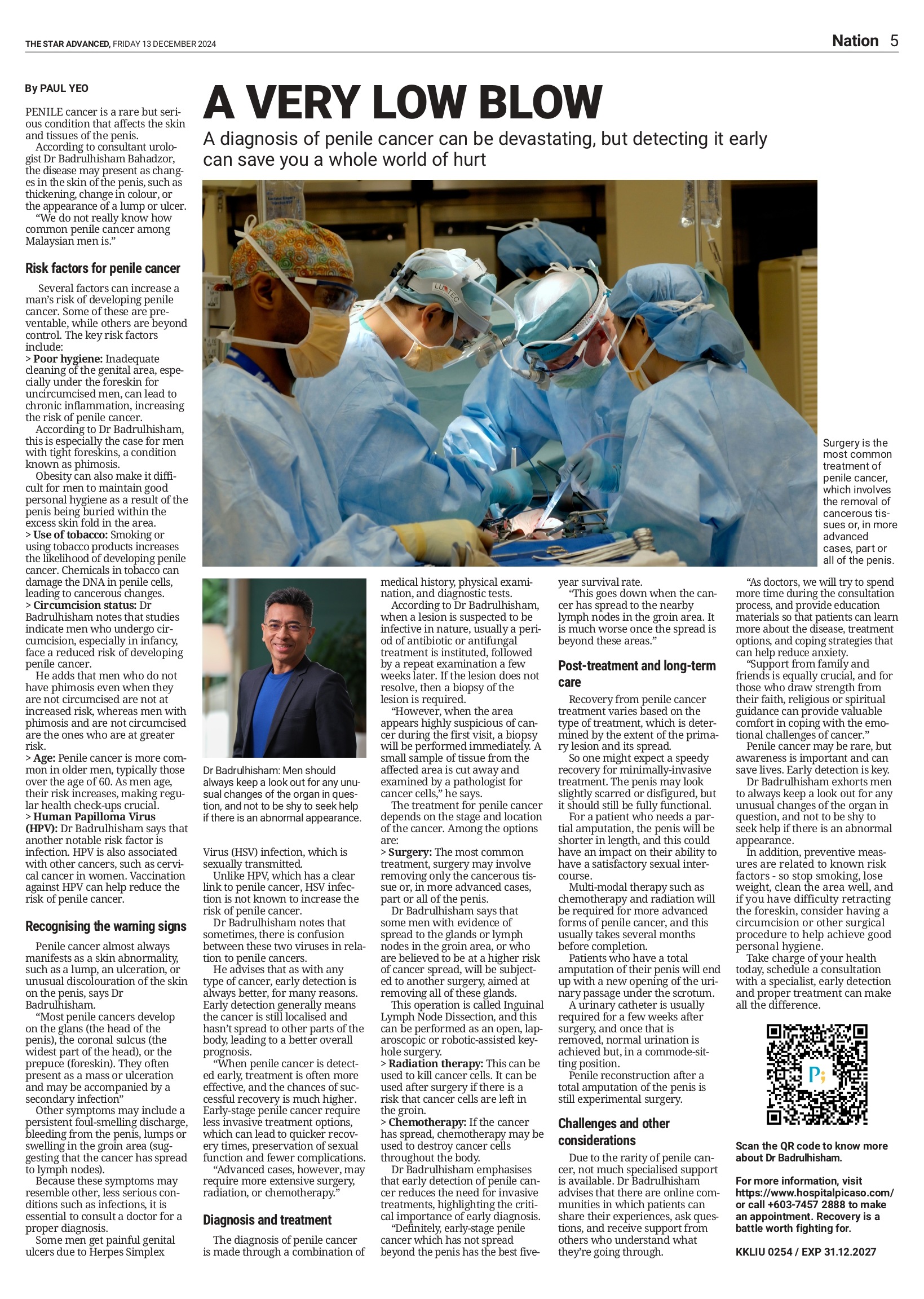 Dr Badrulhisham emphasises that early detection of penile cancer reduces the need for invasive treatments, highlighting the critical importance of early diagnosis.