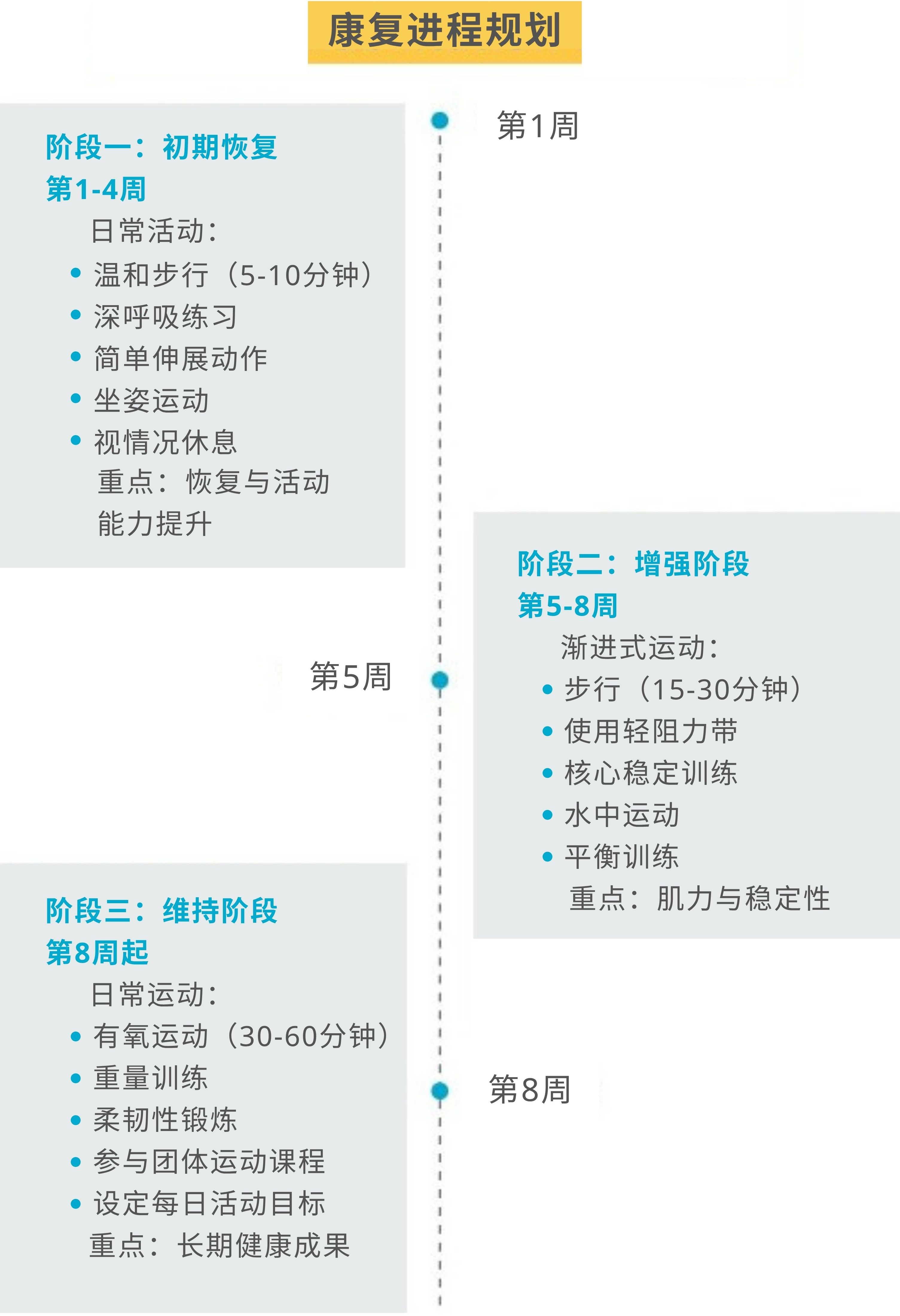 术后物理治疗与指导性运动有助于提升活动能力、缓解疼痛,并预防术后并发症。