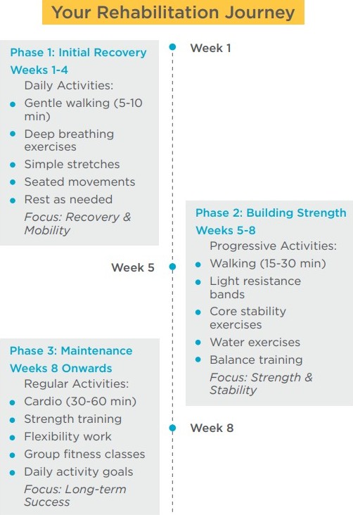 Exercise is an integral part of recovery. Our physiotherapists specialise in designing low-impact, progressive routines to build strength, enhance flexibility, and improve cardiovascular health.